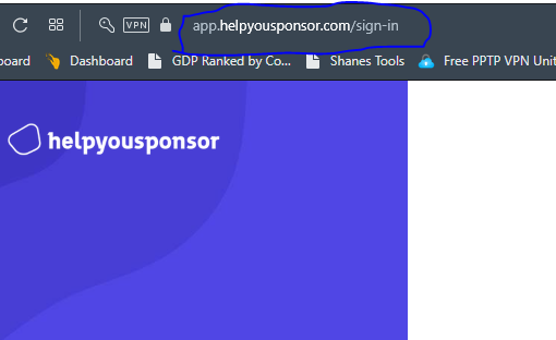 Your HelpYouSponsor domain will vary depending on your individual setup.