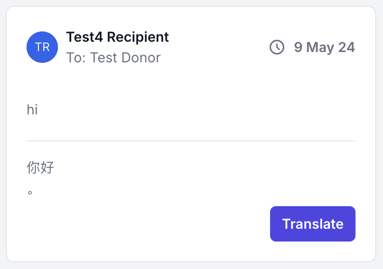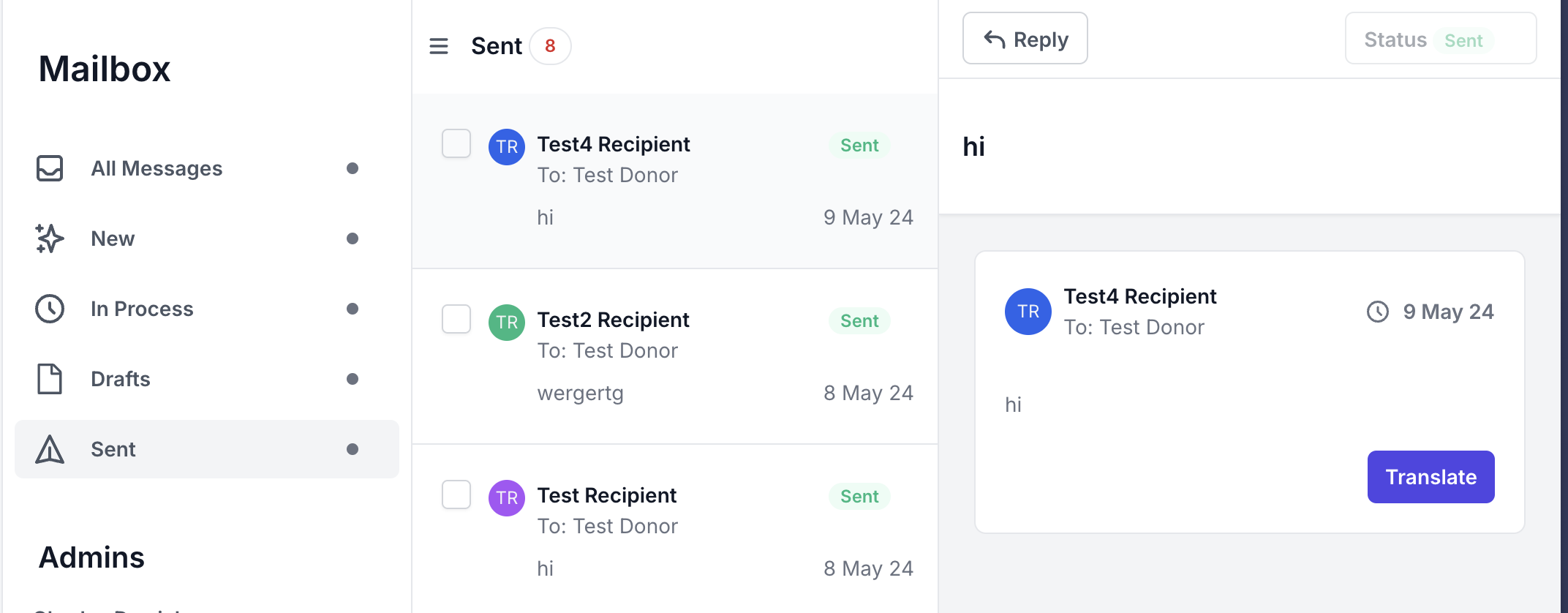 This section lists the incoming messages from the donors to the recipients.