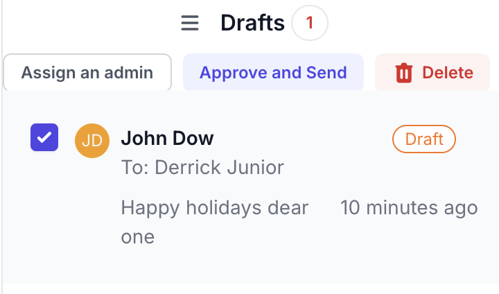 For draft messages, the **Approve and Send** button together with the D**elete** button will appear.