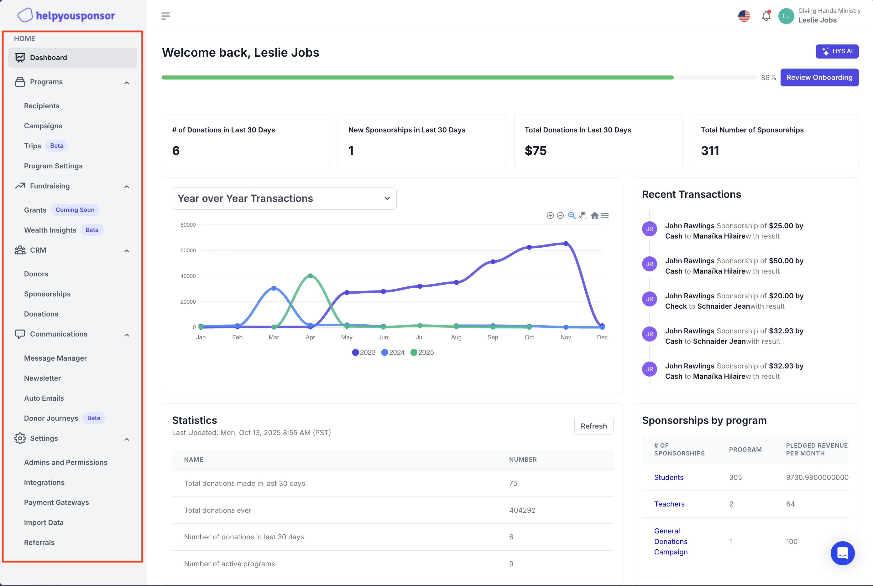 The HelpYouSponsor platform features an intuitive and user-friendly navigation system designed to help you access all features and functions efficiently. This section will guide you through the main navigation elements of the platform.