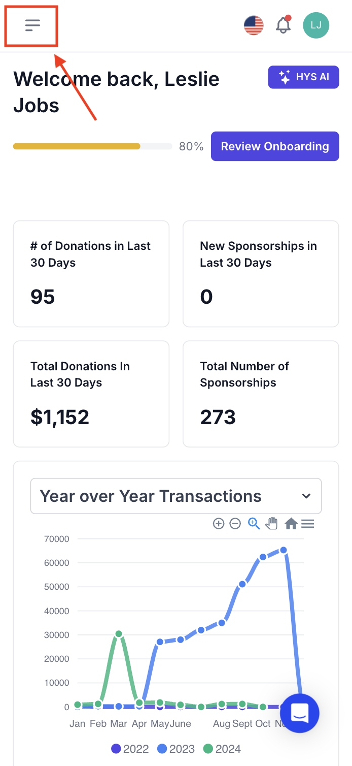 The HelpYouSponsor platform is fully responsive, adapting to various screen sizes and devices. On smaller screens, the main menu collapses into a hamburger menu for easy access.